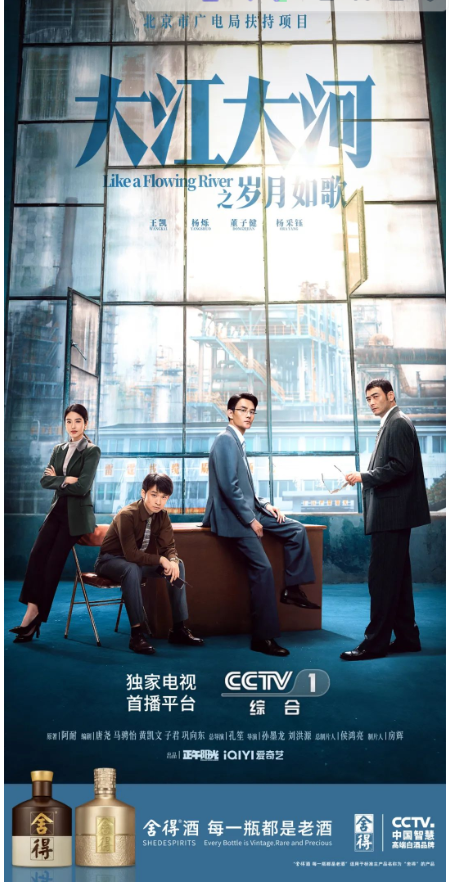 1月8日,开年大剧《大江大河》系列迎来**章,由王凯、杨烁、董子健、杨采钰领衔主演的《大江大河之岁月如歌》在**黄金档首播,该剧开播后收视率迅速突破1.52,获得同时段收视**。舍得酒作为“CCTV-1 开年大剧《大江大河之岁月如歌》**品牌”在剧中亮相。