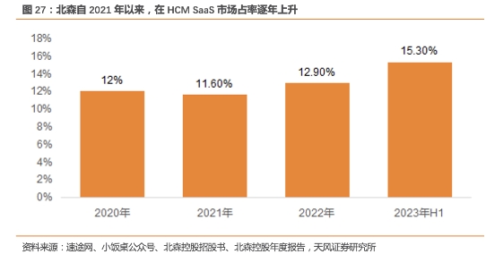 1、北森控股是**HCM SaaS中的头部企业:
