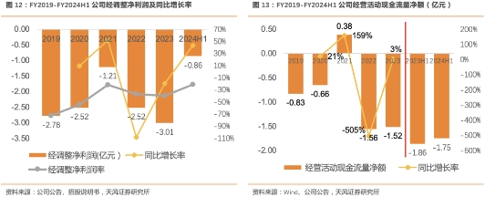 FY24H1公司经调整净亏损收窄, 现金流量净增加额有所改善,报表改善迹象显著。公司FY19-FY24H1经调整净亏损持续为正,主要系公司在战略上优先考虑规模及地域扩张、客户增长及参与度、产品开发及创新,而非短期内盈利能力,抓住**新兴快速增长的云端HCM市场机遇。公司2024H1经调整净亏损为0.86亿元,同比减少43.5%,主要因素为公司提高运营效率而采取积极成本控制措施。FY23公司经营活动现金净流量为-1.52亿元,主要系公司同期经营亏损;FY2024H1公司经营活动现金净流出1.75亿,相较于FY2023H1有所收窄,我们认为2024财年全年有望看到较大幅度的现金流改善。