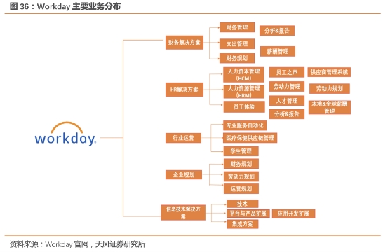 根据Gartner的评估,Workday在2023年HCM云套件领域被评为行业**企业。公司提供Workday人力资本管理(HCM)套件,比如用于规划、财务、采购和专业服务自动化等企业资源规划功能的其他产品,此外,公司也有财务解决方案、企业规划等模块。