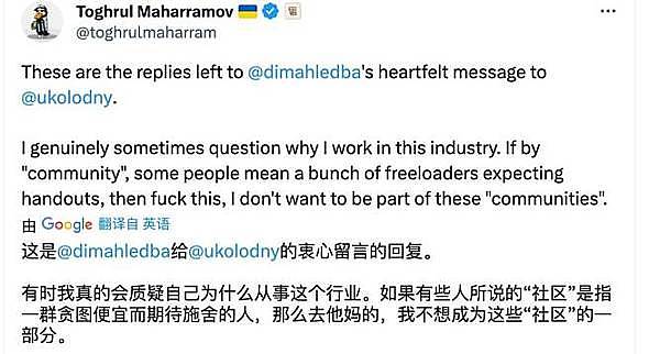 可是,在融资高达数亿美金之后,Scroll有了钱之后却失去了初心,作为技术员工不研究技术反而怒喷社区用户“期待施舍”,请问哪个用户投资你,参与生态交互不是为了挣钱?不光是Scroll,Starknet的技术也曾在推特上有如此的论调。或许,加密市场的**让你们都有钱了,然后失去了初心。可是,社区用户才是一个项目的根基,没有用户即没有未来。水能载舟亦能覆舟。