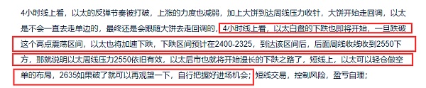 大饼如期下跌,跌破44300位置,**到达41345,比我预计的42850还要低,恭喜大饼昨日跟上空单的朋友小赚一波;以太走势就有点不同,也是给到了下跌,但是在下跌点,又走出独立反弹,**反弹点位在2718位置,随后收长上影线下来,线下给到了空单的布局,文章因为不能及时更新,只能说方向是对的,大饼的下跌开启了大级别回调的**枪,以太的下跌也打破了短线以太持续拉升的节奏,后市交易上,行情会开始走大级别回调,把握好机会;