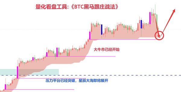比特短线进入小调整阶段,已经进入了支撑区域,只要不是高杠杠的,基本上,已经进入了底仓埋伏点了,不要害怕回调,大趋势向上的过程中,向下的小回调很正常,贴着黄金柱的位置,是非常安全的!
