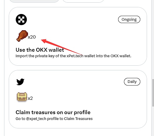 进行上述操作之后,使用OKX钱包登录游戏,还可以领取20个大鸡腿哦!赶快去领取吧!官方白送的,不要白不要!(鸡腿未来可能会涨价哦)