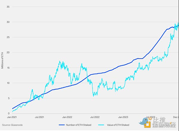 2023年,以太坊(ETH)价格上涨超90%,这得益于Shapella升级的成功以及加密货币现货交易型开放式指数基金(ETF)获批前景的日益明朗,市场参与者备受鼓舞。