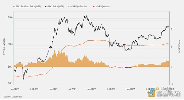 极端的MVRV值能揭示市场过热或低估的时段,以及投资者盈利远超或远低于平均水平(即已实现价格)的时期。