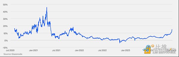 加密货币市场中的基差历来为正(市场脱节除外)。基差的极端波动,无论是正向还是负向,往往与市场情绪的大幅波动有关。