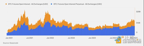 随着机构投资者越来越多地进入这一领域,2023年期权未平仓合约有所增加。2023年10月,BTC期权的未平仓合约**超过BTC期货。