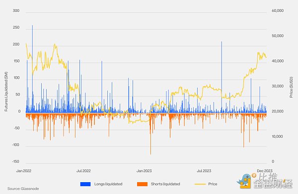 2023年,比特币价格涨幅超过155%。市场参与者受到多方面因素的鼓舞,包括通胀步伐的放缓以及现货加密货币交易所交易基金(ETFs)获批可能性的增加。