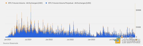 加密期货的交易量分为传统期货(也称为定期或日历期货)和永续期货(perps),后者是加密货币独有的。永续期货没有到期日,因此持有者无需进行展期操作。