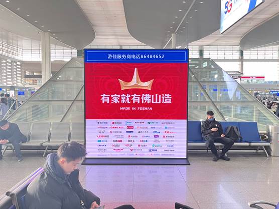 继去年2月“有家就有佛山造”广告登陆北京广州两地机场后,2024年1月10日,“有家就有佛山造”主题广告再次刷屏北京、广州、上海、成都、长沙五市高铁站的215块屏幕。