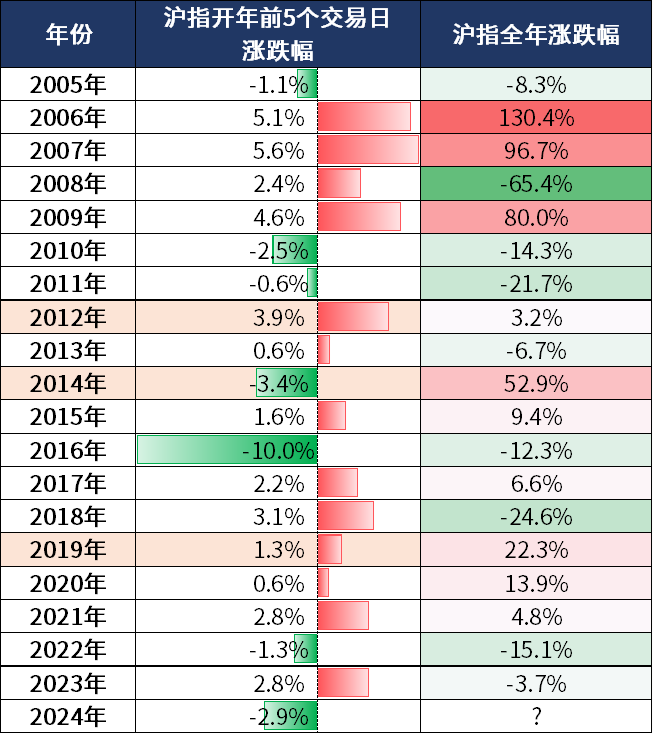 对A股而言,“开年不红”并不意味着全年没有行情。如果以上证指数来刻画A股的走势,其实自2005年以来,开年下跌的情况出现过7次,但在这7次开年下跌对应的全年行情中,有10、11、16和22年的4次下跌,也有12、14和19年的3次上涨,14年和19年更是公认的两**牛市的起点。