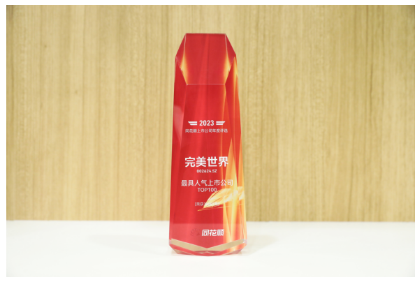 完美世界荣获同花顺“2023年度最具人气上市公司TOP100”奖
