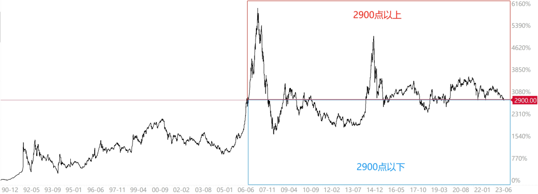 如果以“点位”来评估上证指数的“水位”,从上证指数自基期以来至今的历史走势图上可知,2900点的A股处于历史偏低区域。自**站上2900点以来,沪指在2900点以下停留的时间,要小于沪指在2900点以上停留的时间;尤其是2015年以来,沪指每次跌破2900点后继续回调的空间有限。