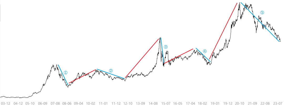 但每次的低谷,都是从前一轮周期的山顶跌下来的,市场的下跌确实很难熬,“长期的收获与回报,或许都是源于至暗时刻的坚守与孤勇。”