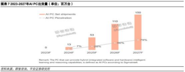 根据群智咨询预测,随着各大品牌整机厂不断推出 AI PC 产品,预计 2024 年全球 AIPC 整机出货量将达 1300 万台,有望成为 AIPC 规模出货的元年。