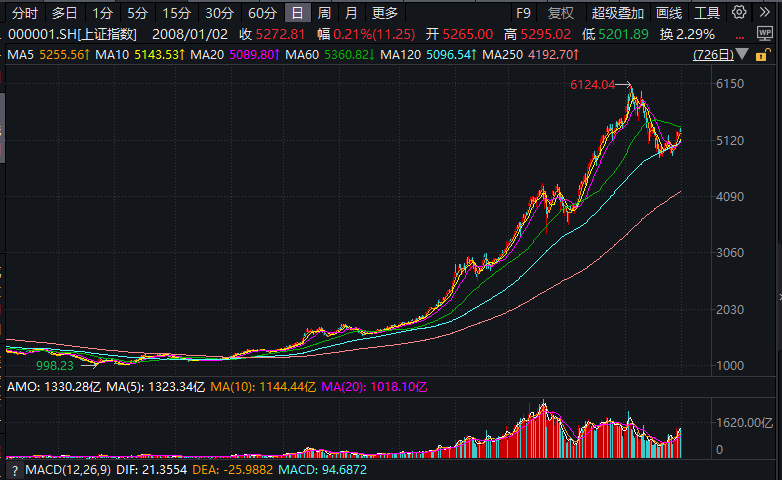 从2005年的1000点左右起步,至2007年10月16日的6124,数倍增长。