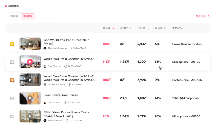 另外,在WotoHub-品牌洞察的视频榜单中,此次更新调整还将竞品的带货视频数据单独排名显示,方便商家快速吸引竞品的成功经验,赋能自己品牌的营销策略升华。