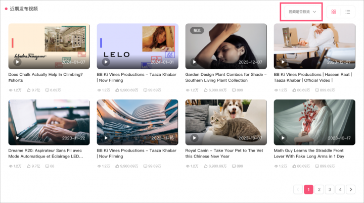 在红人详情页抓取的红人近期发布视频中,WotoHub提供了是否投流的筛选项,方便商家了解红人的优质带货素材,快速了解红人带货风格