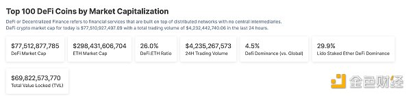 1、DeFi**总市值:775.12亿美元