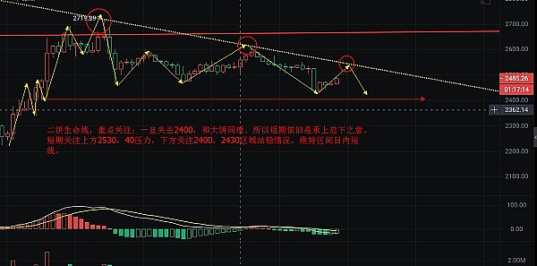 操作上短线维持在42000压力上下做空,短线下看41000,40800,见40800附近小多,各带损500点,以弱势区间震荡对待,只有突破,或下破4万关口再重新定义!二饼则留意2400,30支撑,2540附近压力,维持震荡区间做单;