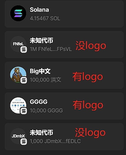 通过Sol浏览器查询,也能看到**的logo和详细信息(**简介一般不会显示)