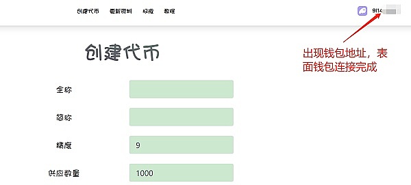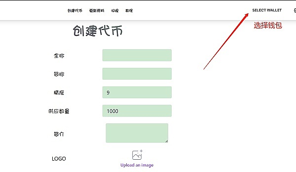 进入发币页面之后,点击右上角“选择钱包”