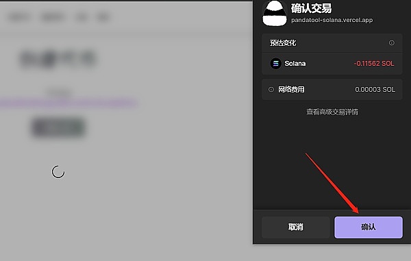 确定好信息无误之后,点击“立即创建”按钮,这时候会跳出Phantom钱包,确认并支付费用即可,如下所示: