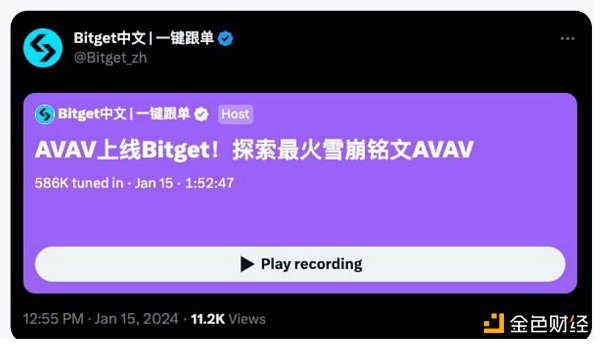 AVAV不仅**出色的技术支持和庞大社区的默契合作,更在于其对娱乐行业支付的深刻理解和不断创新的精神。在近期的一场推特space中,创造了58万人次收听 1万 同时在线人数记录。