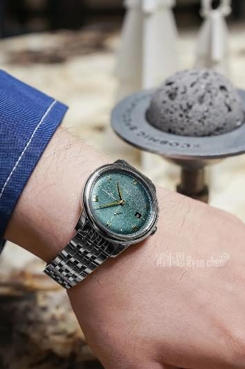 这只碟飞男士手表简洁而圆滑的表壳,透露着复古的绅士氛围。41毫米的纤薄表壳采用精钢材质打造,经过PVD处理的拱形表盘呈现出独特的松绿色,其上不规则排列的垂直纹理增添表盘的细腻质感。也赋予表盘更加立体的视觉效果。
