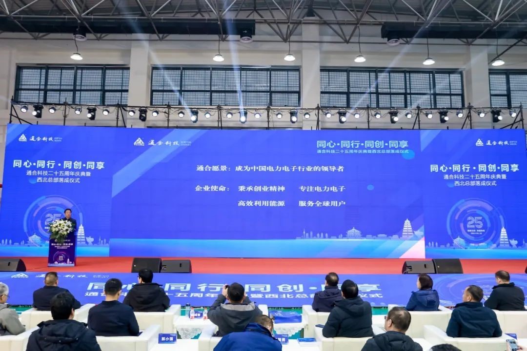 2024年1月18日,“同心·同行·同创·同享”通合科技25周年庆典暨西北总部落成典礼在西安隆重举行。政府领导、行业嘉宾、战略伙伴及媒体朋友三百余人齐聚一堂,共同见证通合科技25周年华诞及西北总部落成,共同书写通合科技历史进程中的重要里程碑。