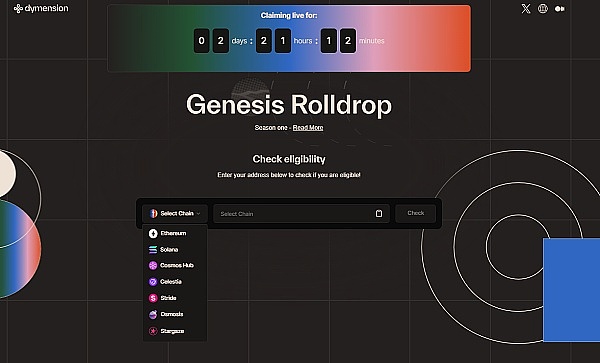 Dymension给所有Tia/Atom质押用户,空投DYM**;
