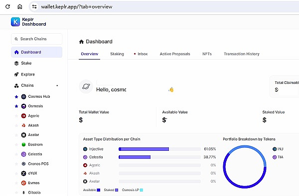 除了质押celestia网络,keplr钱包里还可以质押co**os、o**osis等网络,而最近co**os生态也颇高,或许也有机会。