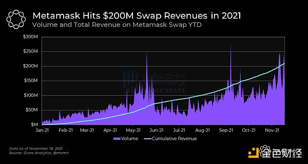 MetaMask 通过 Swap 功能在 2021 年达到了 2 亿美元的营收