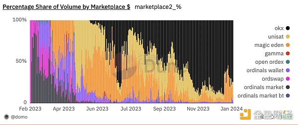 而早期作为买卖 BRC ****的链上出入口,比特币钱包 UniSat 成了整个币圈都在讨论的名字,是为数不多真正把握住比特币生态爆发的早期项目。2023 年 5 月前后,Dune 数据显示,Unisat 在这段时间每日独立用户数在 4000 人到 8000 人左右,在彼时的市场上是**的主流。