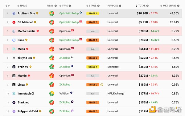 1)Scroll:是以太坊的原生 zkEVM Layer2 解决方案,代表了 Type 2 的 zkEVM。可实现对现有以太坊应用程序和工具的原生兼容。Scroll 处理链下交易,并在链上发布简洁的正确性证明。与以太坊基础层相比,这将带来更高的吞吐量和更低的成本。