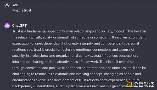 ChatGPT 对「什么是信任」的回答: