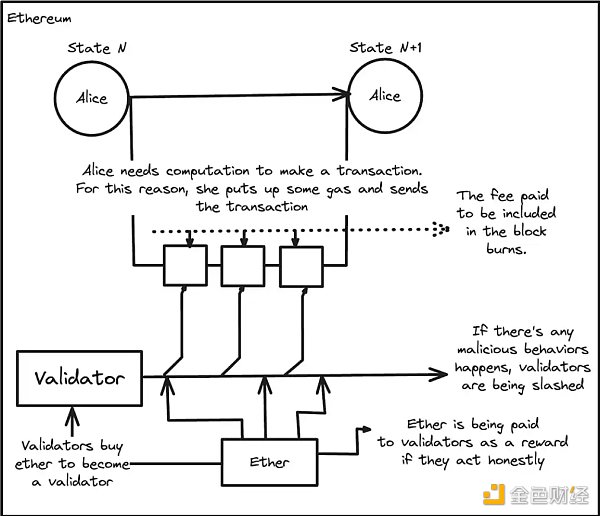 对于以太坊来说,这是一场不同的游戏。验证网络的参与者会预先收到**数量的以太坊,如果他们诚实行事,就会获得以太坊奖励。与比特币不同,不良行为(注意:不良行为的类型非常不同,我选择此作为土耳其语中恶意行为的最合适翻译。如果造成混乱,我深表歉意)不仅会导致无法获得奖励,还会导致销毁比特币。以太坊被验证者锁定。