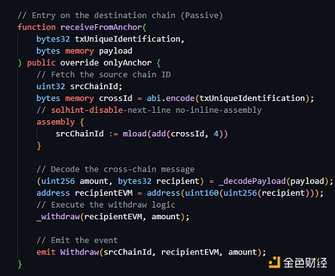 通过 Dedaub 对合约进行反编译,可以发现一些特殊的签名和函数名,最有趣的是多次提到「anchor」。「receiveFromAnchor」并不是一个常见的函数名。