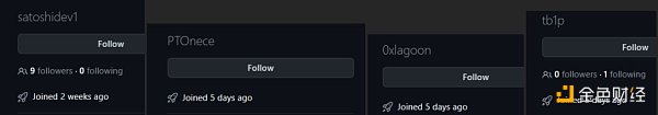首先,通过 SatoshiVM 的 Git** 可知,该项目**次提交代码是在 2024 年 1 月 5 日,代码贡献者共有 4 位,包括 satoshidev1、PTOnece、0xlagoon 和 tb1p。satoshidev1 的 Git** 账号是两周前创建的,其他人则是 5 天前。
