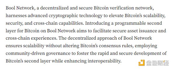 Bool Network 是一个于 2020 年末成立的去**化签名协议,团队一直在研究比特币 Layer2 解决方案,2022 年曾发表过一篇学术论文 Bool Network: An Open, Distributed, Secure Cross-Chain Notary Platform。