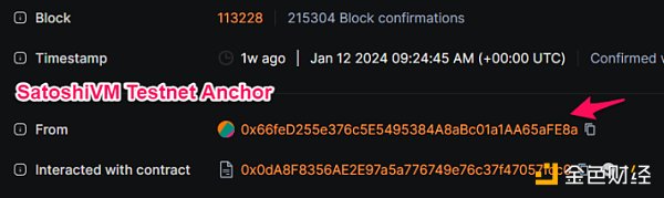 那么,是谁部署了 AnchorFactory?答案也已浮出水面,就是与部署 SatoshiVM Anchor 合约的 0x66feD255e376c5E5495384A8aBc01a1**65aFE8a 地址。