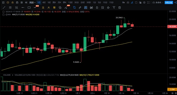 目前L2赛道,被大家忽略掉的,当属TIA,去年11月初,它一上线Bitget,我们群让1美金多买的,现在币价涨到了19美金多,翻了十几倍,现在市值还比较低,后续依旧有很大的上涨空间,短期若能回调至15附近,空仓的可分批买入。