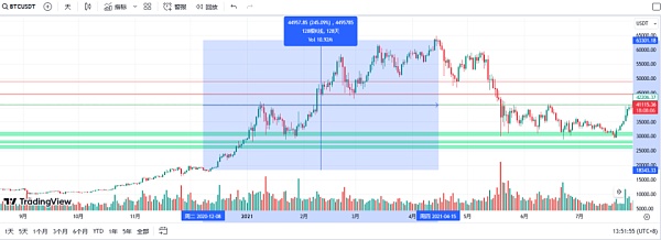 2021年4月15日,Coinbase正式登陆纳斯达克,第2只靴子终于正式落地。虽然开盘价的确如预期般大涨,达到了381美元,初始市值即高达996亿美元(此前给出的参考价为每股250美元),但很快便出现了“Sell The News”,行情掉头向下,比特币在一个月时间内跌回至3万美元附近,利好落地并没有创造更高的价格,只是让投机者出货的机会。