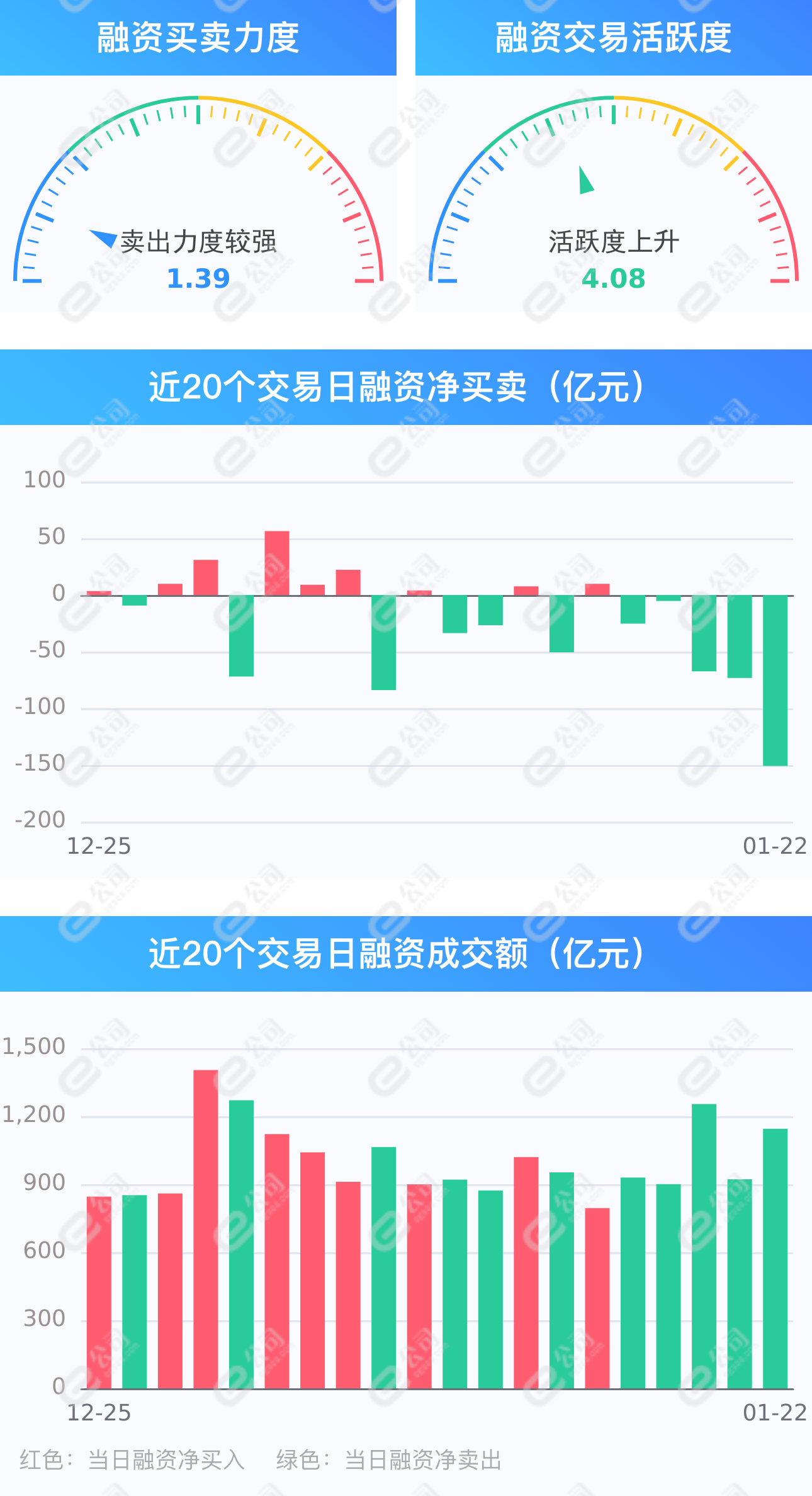 截至1月22日,上交所融资余额报8092.97亿元,较前一交易日减少64.21亿元;深交所融资余额报7281.17亿元,较前一交易日减少86.56亿元;两市合计15374.13亿元,较前一交易日减少150.77亿元,融资交易额1145.06亿元,占A股成交额14.42%,其中融资买入额497.14亿元,融资偿还额647.91亿元,交易活跃度上升24.13%。统计发现,融资客保持连续5日净卖出,净卖出额分别为25.28亿元、5.27亿元、67.34亿元、73.21亿元、150.77亿元,合计321.87亿元。(此稿由证券时报e公司写稿机器人“快手小e”完成。)