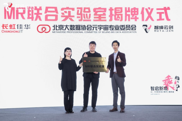 由智境云创、长虹佳华以及北京大数据协会共同打造的“MR联合实验室”也在现场正式揭牌。“MR实验室”将充分利用智境云创、长虹佳华、北京大数据协会在MR数字内容生态、硬件设备研发和产业化方面的优势,结合北京大数据协会在渠道、资源方面优势,形成产学研一体化的特色研究模式,面向空间计算技术的研发与优化、数字内容的创新与制作、MR应用场景探索与拓展等领域进行深入研究。