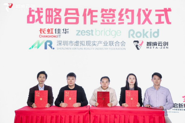 为与更多合作伙伴共同推进MR行业发展,智境云创还与长虹佳华、泽桥医疗、Rokid、深圳市虚拟现实产业联合会举行了战略合作签约仪式。在众多合作伙伴的共同努力下,将会产生强大的协同效应,实现AI、MR与空间计算融合突破。