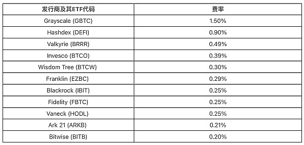比特币现货 ETF 的出现为投资者提供了一种更加便捷的比特币投资途径,这一点尤其对那些已经熟悉传统股票市场的投资者来说尤为重要。与在加密货币交易所直接购买比特币相比,通过股票市场直接购买比特币现货 ETF 要简单得多。比特币现货ETF看起来有点复杂,但是它的交易买卖却非常简单,与买卖美股的操作一样:开通美股账户、输入代码找到对应的品种、买入并确认。需要注意的是,虽然都是比特币现货ETF,但是不同发行商收取的费用不一样。目前,美国SEC批准的11只比特币现货ETF收费在0.2%-1.5%之间,具体如下: