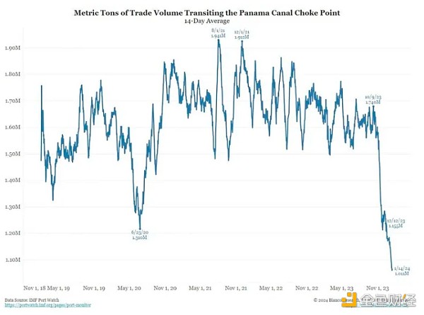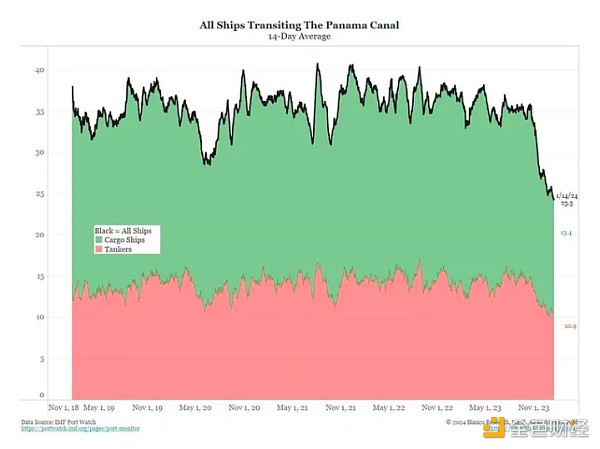 类似的全球供应链危机正在上演,但这一次,货物运输的困难是由厄尔尼诺现象和西方船只停运曼德海峡造成的。