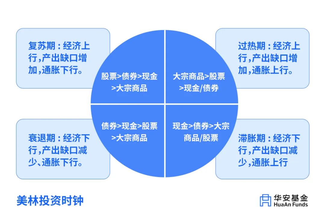 面对变化的市场,可以参考“美林投资时钟”来配置资产,基于经济周期来调整自己的投资组合,利用不同资产的表现差异,来帮助我们增厚收益。